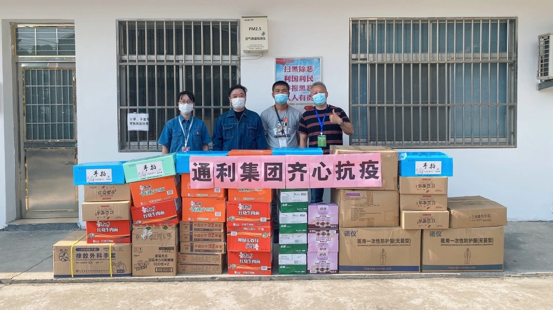 5月7日~9日,通利集團向當?shù)卣⑹聵I(yè)單位、村委等捐贈防護服、隔離服、口罩、醫(yī)用橡膠手套、消毒液、食品及日常用品等,為奮戰(zhàn)在疫情防控一線的“抗疫戰(zhàn)士”送去物資,助力防疫工作。