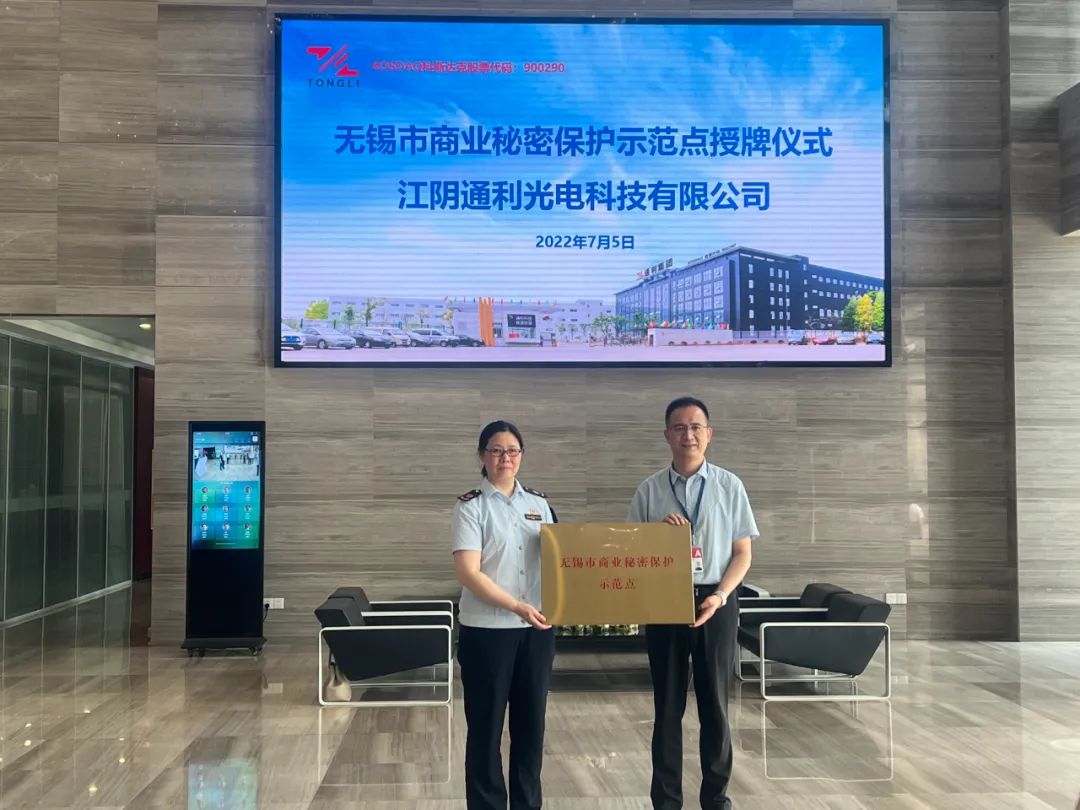 7月5日上午,江陰通利光電科技有限公司獲評“無錫市商業(yè)秘密保護示范點”。