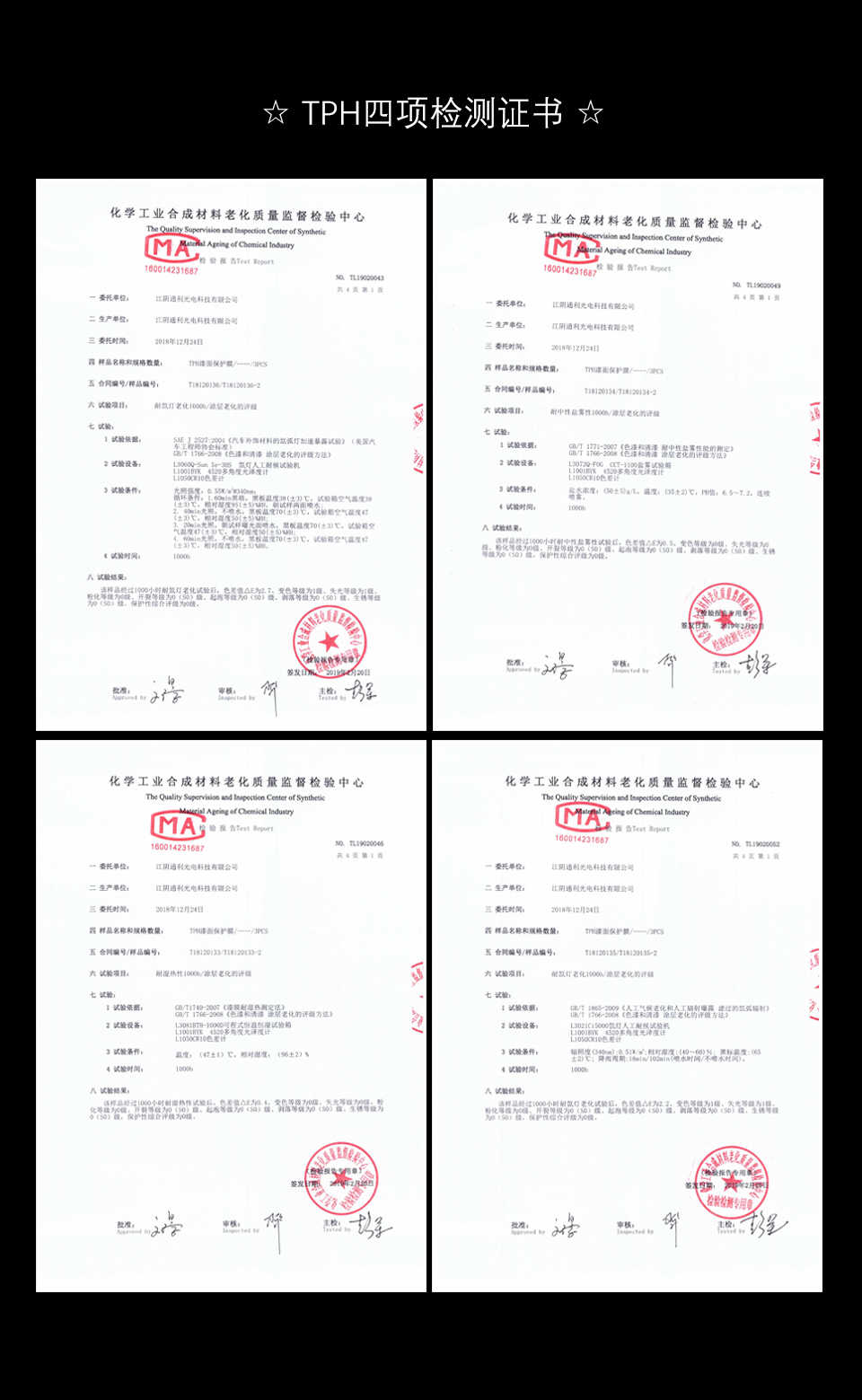 通利科技TPU/TPH/TPE漆面膜通過國家多項(xiàng)老化標(biāo)準(zhǔn)