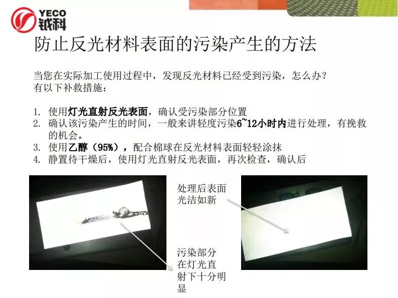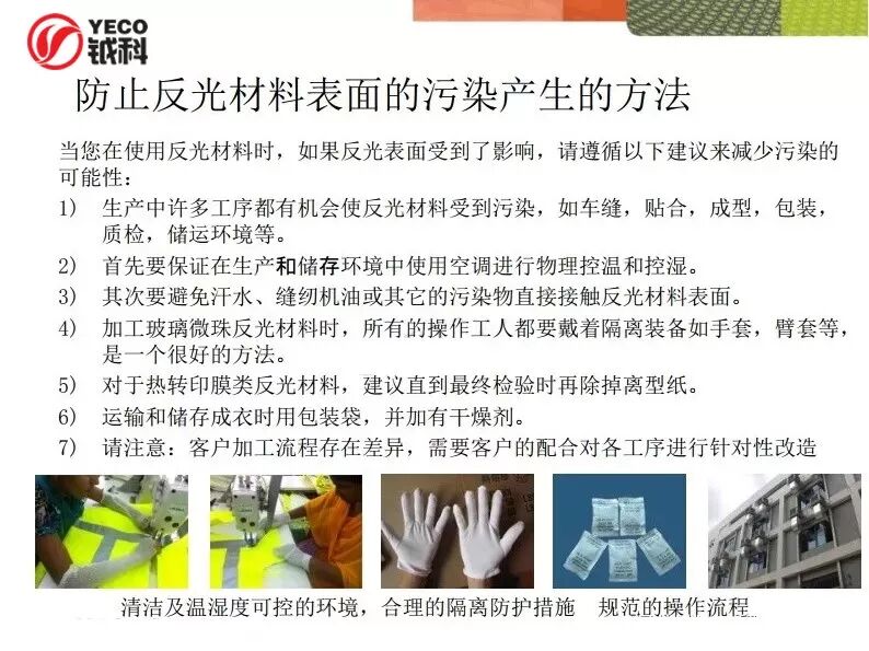 然而,在成衣生產(chǎn)加工過程中,經(jīng)常會碰到反光表面被污染問題,雖然反光材料的反光值不會有太大影響,但勢必影響到成衣的美觀和銷售!