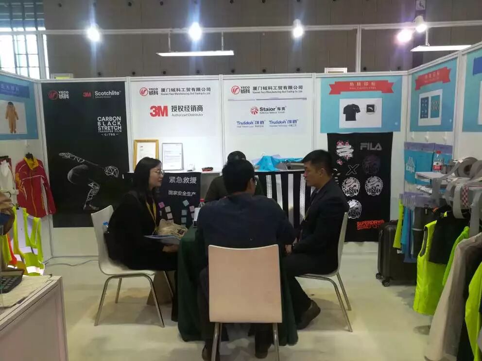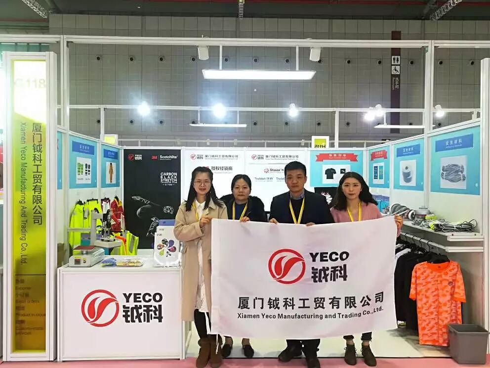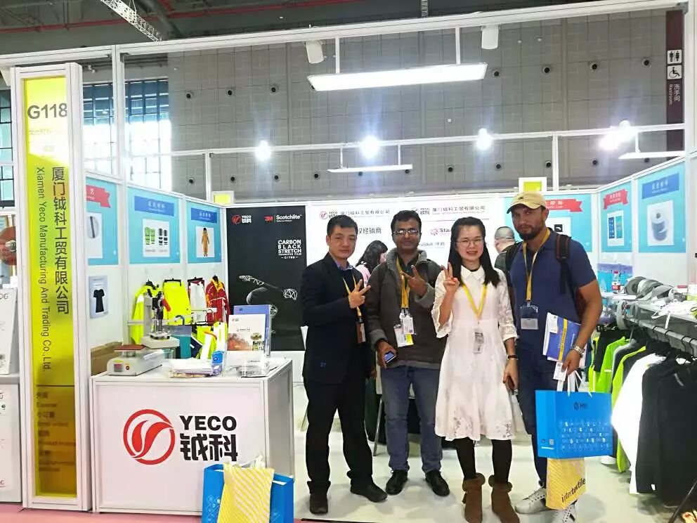 鉞科在此次展會(huì)中展示了我們反光布、反光條、網(wǎng)布等多種材料相結(jié)合的效果,體現(xiàn)我司形式多樣的加工工藝,分別有無縫、沖孔、轉(zhuǎn)印、貼合、包邊等。鉞科通過反光來傳遞每天的快樂和世界的精彩!期待廣大客戶朋友們多多支持哈!讓我們鉞科將卓越而有特色的產(chǎn)品呈現(xiàn)給各位。來認(rèn)識一下展會(huì)上忙碌的鉞科小伙伴哈!去過展會(huì)的親們,還記得他們嗎?